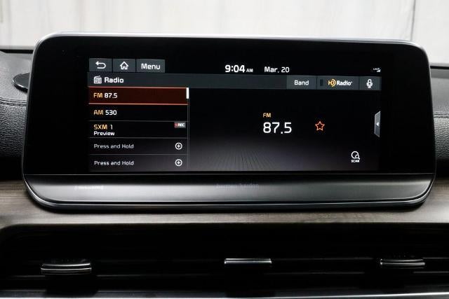 - Radio: AM/FM/MP3/SiriusXM Audio System -inc: UVO link infotainment system, w/smartphone integration for remote commands and remote vehicle status, harman/kardon premium sound audio system w/10 speakers, Clari-Fi digital audio restoration, QuantumLogic, support for Android Auto and Apple CarPlay, 10.25" Thin Film Transistor (TFT) touch-screen display, navigation, a total of 6 USB charge ports in all rows, Bluetooth® wireless connectivity w/voice recognition (a Bluetooth® enabled cell phone is required to use Bluetooth® wireless technology) and Multi-Bluetooth connectivity, allowing 2 phone connections simultaneously