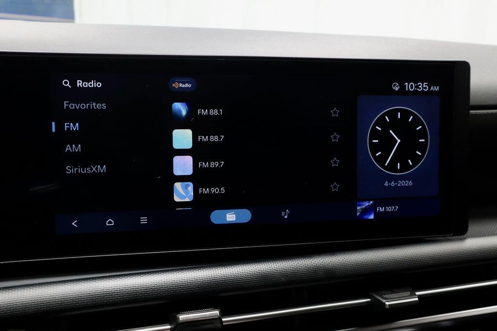 - Radio: AM/FM/HD Audio System -inc: 12.3" color touchscreen display, 6 speakers, SiriusXM satellite radio system (3-month trial subscription), wireless Apple CarPlay and Android Auto integration, controller OTA update capability, Blue Link connected car system and USB connectivity